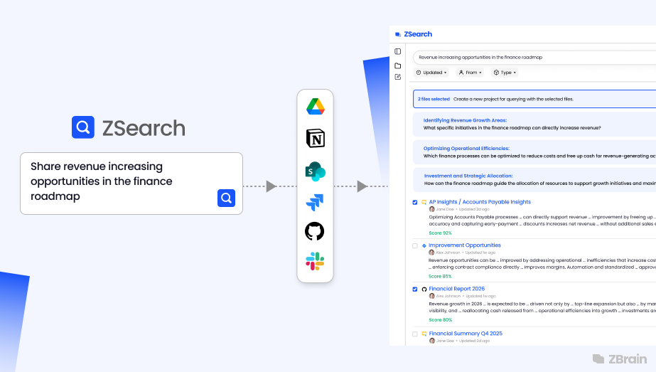 By unifying knowledge spread across multiple systems, ZSearch eliminates fragmented search experiences and enables users to retrieve precise, contextually relevant information using both keyword-based and natural language queries.