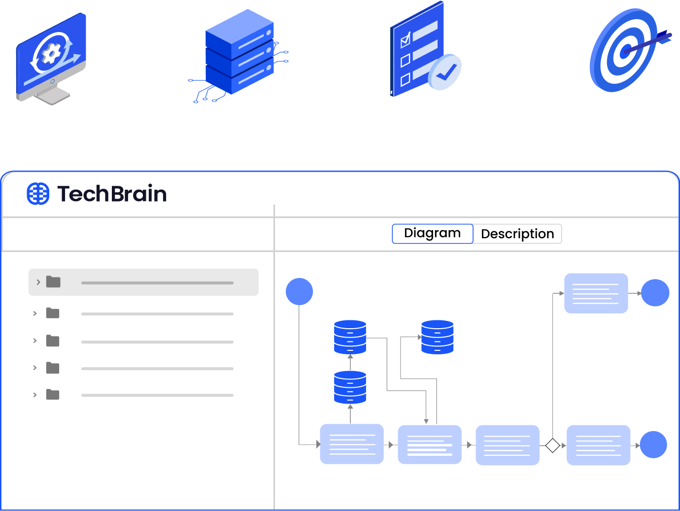 TechBrain supports solution architecture design by providing a structured environment where solution requirements are translated into architecture blueprints, execution workflows, and implementation-ready technical artifacts. It consolidates requirements, aligns designs to enterprise systems, and formalizes architecture before development begins.