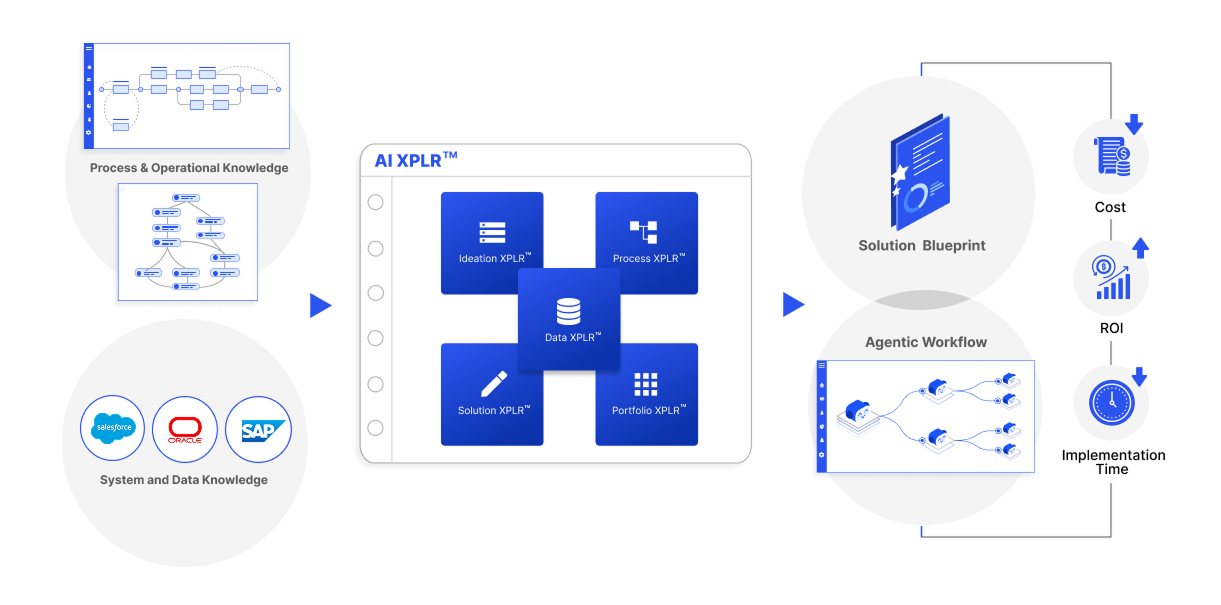 ZBrain AI XPLR™ supports the full AI opportunity lifecycle, enabling enterprises to consistently capture, evaluate, and translate ideas into implementation-ready solution designs that deliver measurable business value at scale.